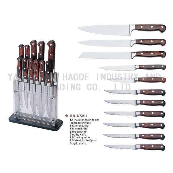 12件不锈钢厨房套刀, 彩木手柄